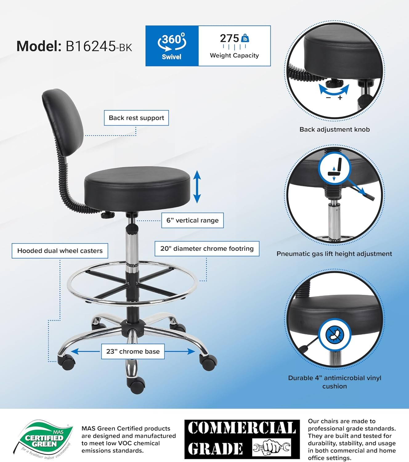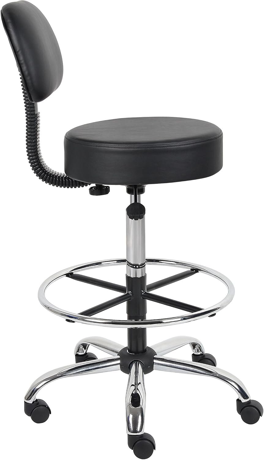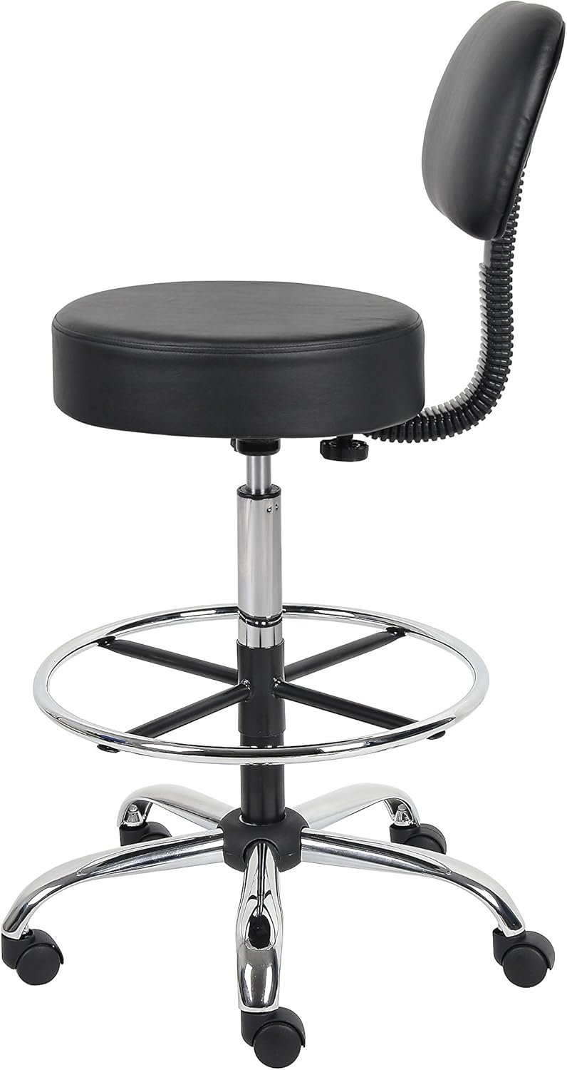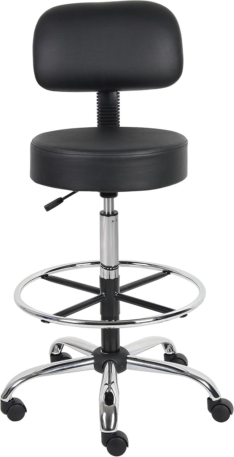 Boss Office Products Be Well Medical Spa Drafting Stool with Back, Black