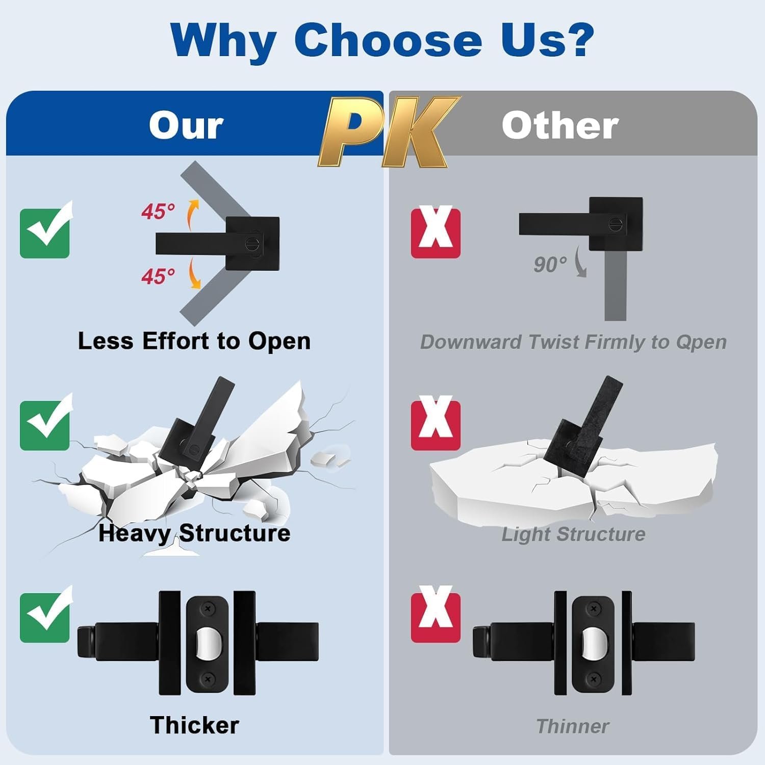 • Fits door thickness: 1‑3/8″ to 1‑3/4″ (35‑45 mm)