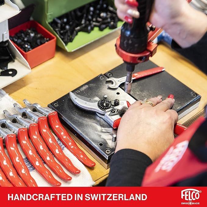 Precision Swiss-made pruning shears designed for smooth, clean cuts every time. Durable hardened steel blades and a lightweight ergonomic handle make them perfect for trimming branches, flowers, shrubs, and hedges. Built to last with replaceable parts — a must-have tool for gardeners who want professional results.