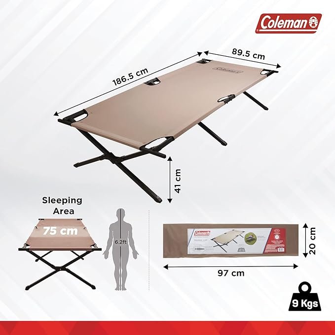 The Coleman 765353 Trailhead II Military Style Camping Cot offers durable and comfortable elevated sleeping for outdoor adventures. Its sturdy steel frame supports up to 300 lbs and fits users up to 6’2″ tall. With a foldable, compact design, it’s easy to store and transport, making it ideal for camping, hunting, or emergency use. Reliable and portable, this cot ensures a restful night wherever your adventures take you.