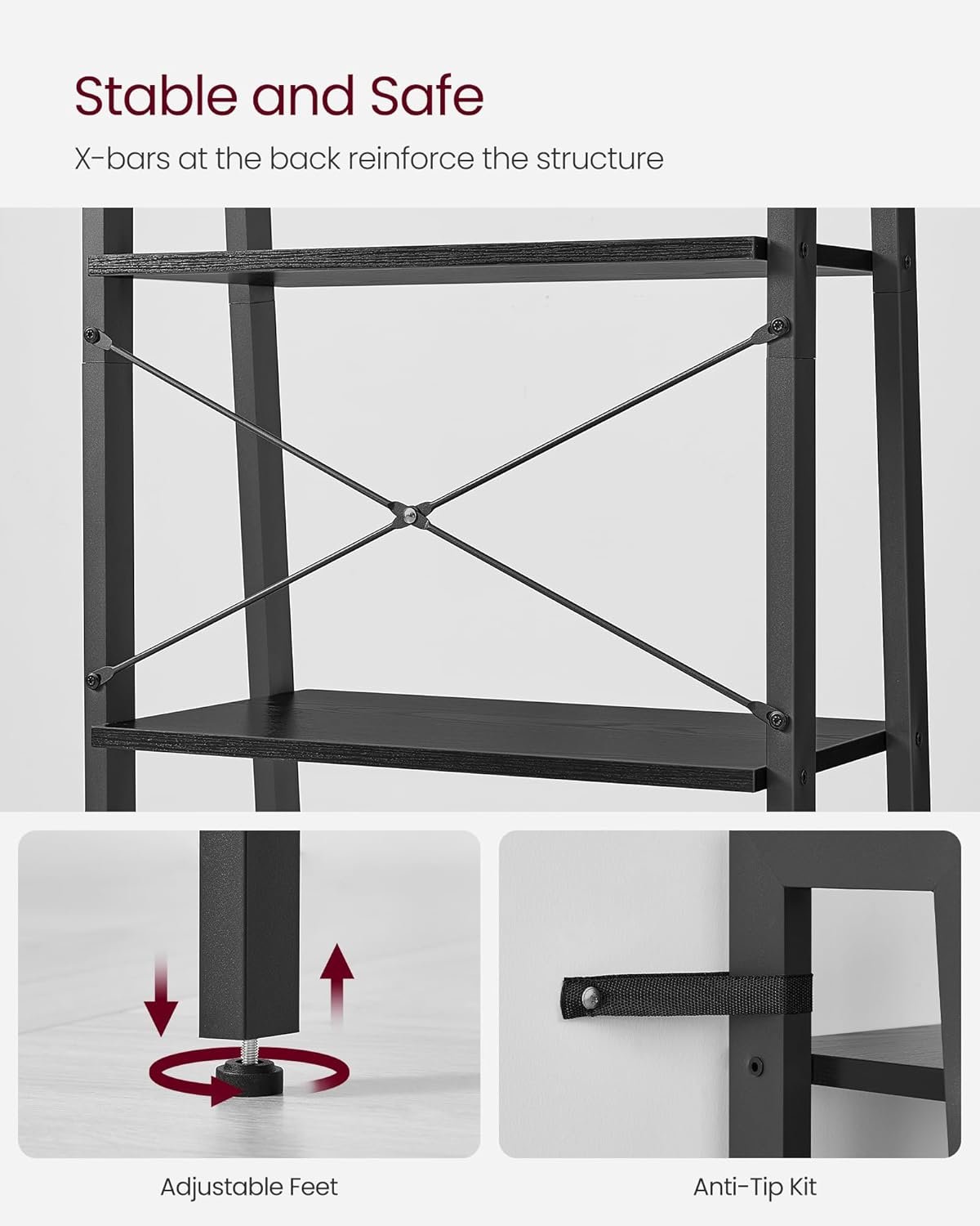 The VASAGLE 5‑Tier Ladder Bookshelf combines modern industrial style with practical storage for any room. Featuring a sturdy steel frame and high-quality particleboard shelves, it offers five spacious tiers to organize books, decor, and essentials while maximizing vertical space. Easy to assemble and equipped with an anti-tip kit for safety, this bookshelf is both functional and stylish—upgrade your home organization today.